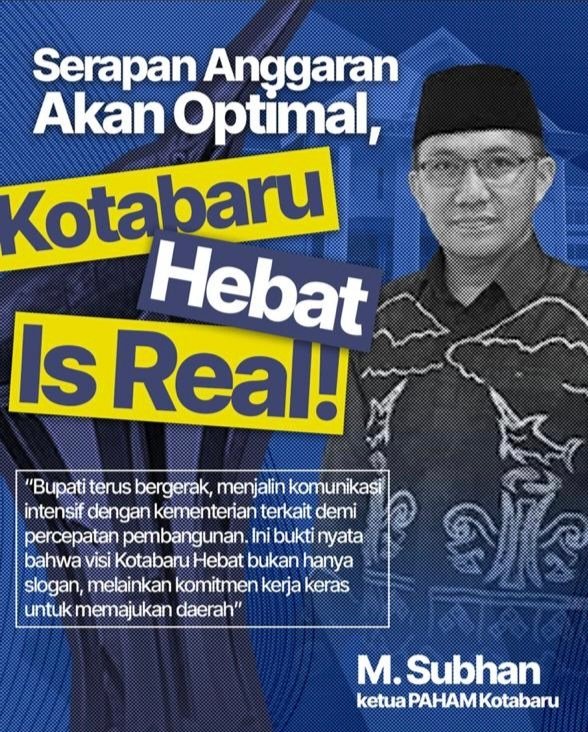 KOTABARU, Refrensi.id – Ketua Pusat Advokasi Hukum dan Hak Asasi Manusia (PAHAM) Cabang Kotabaru, M. Subhan, menilai penilaian terhadap serapan anggaran Kabupaten Kotabaru yang baru mencapai 34 persen pada tahun 2025 masih terlalu dini dan terkesan tidak profesional.