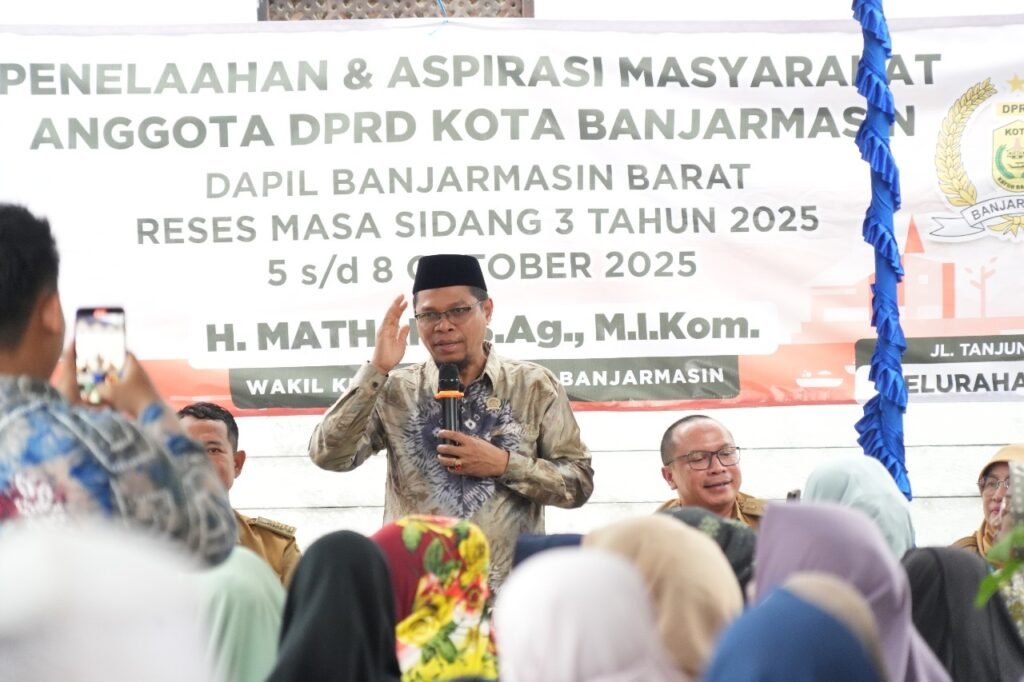 RESES: Wakil Ketua DPRD Banjarmasin Mathari menggelar kegiatan Penelaahan dan Aspirasi Masyarakat Dapil Banjarmasin Barat di Jalan Tanjung Harapan RT 14 Kelurahan Teluk Tiram, Banjarmasin Barat.
