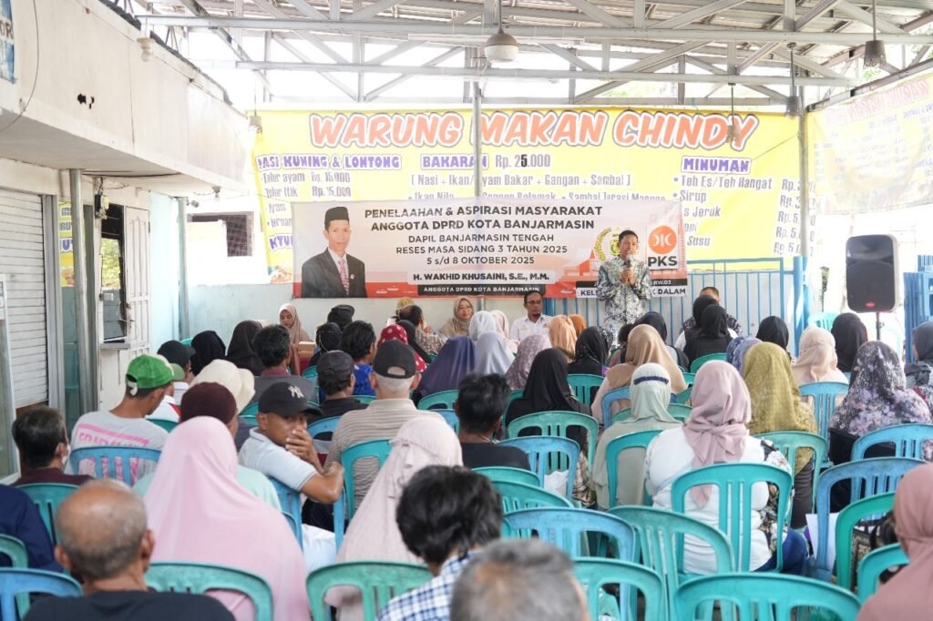 RESES: Anggota DPRD Banjarmasin Wakhid Khusaini menggelar kegiatan Penelaahan dan Aspirasi Masyarakat Dapil Banjarmasin Tengah di Jalan Skip Lama RT 38 Kelurahan Teluk dalam.
